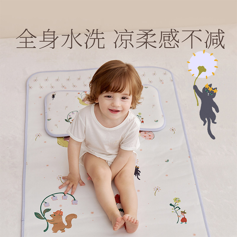 天英氏儿童凉席幼儿园婴儿冰丝软凉席新生宝宝可用透气吸汗A类席子