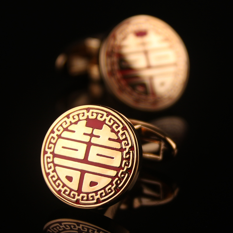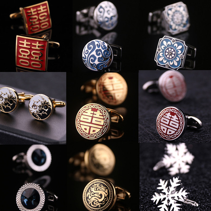 天猫【礼盒装】新款喜字袖扣男水晶商务袖钉法式衬衣衬衫袖口扣