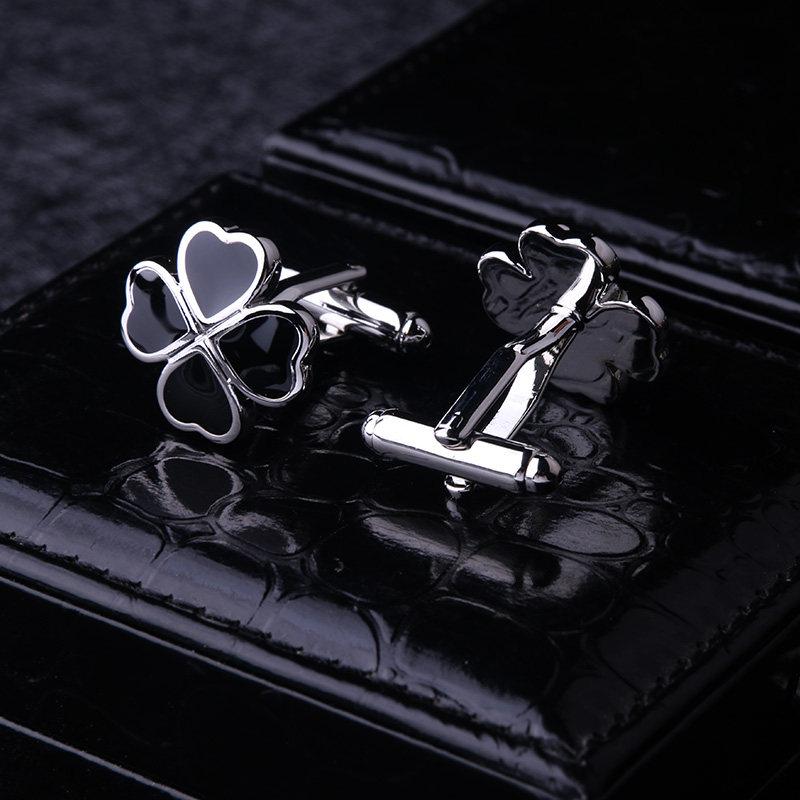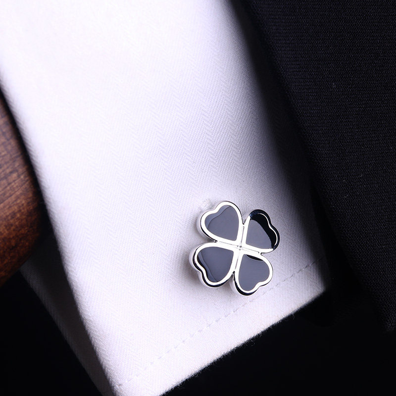 天猫猎尚 黑色四叶袖扣男士法式衬衫袖扣袖钉 男士正装法式衬衫袖口扣