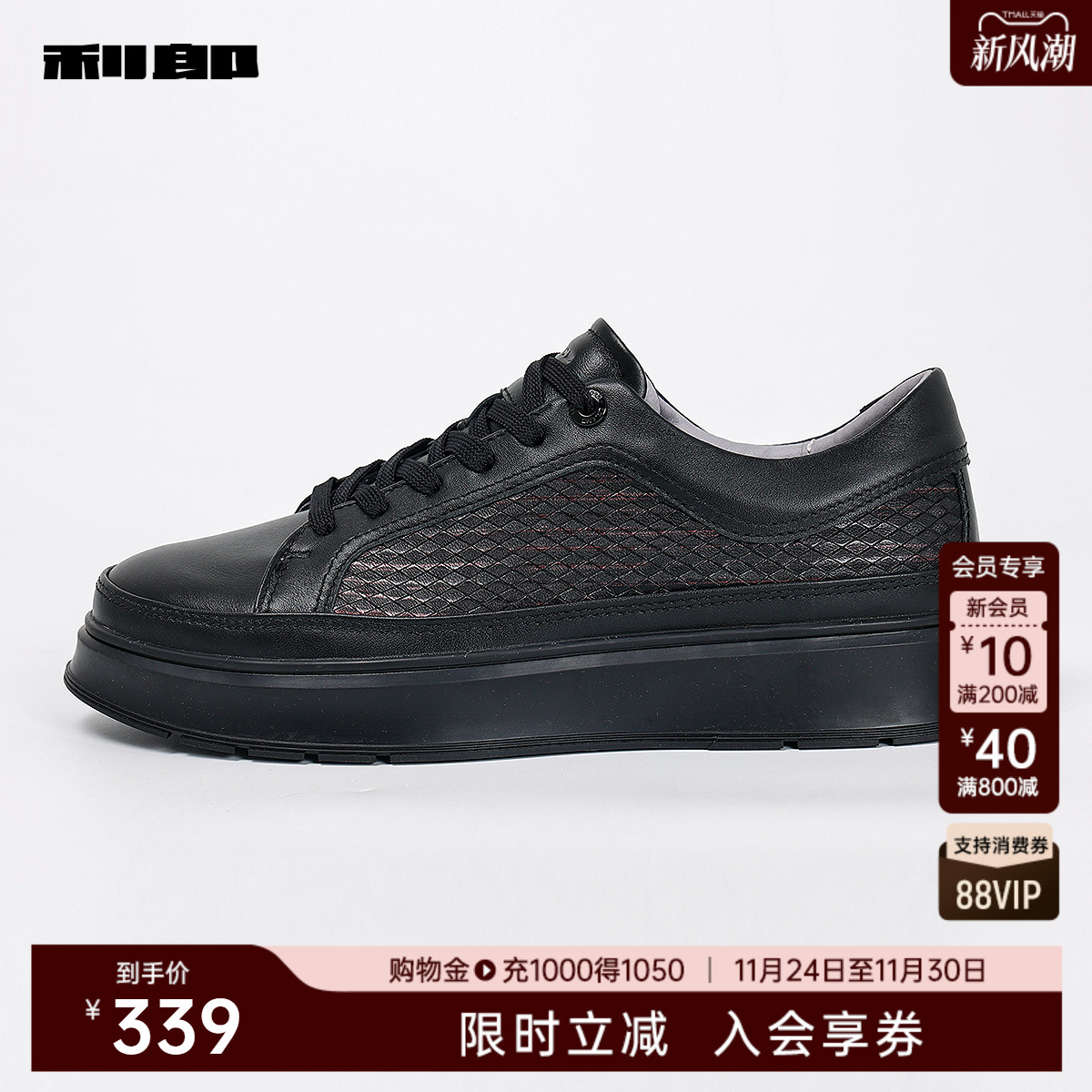 天猫利郎官方 羊皮革休闲皮鞋男士百搭牛皮革板鞋2025秋季新款鞋子男