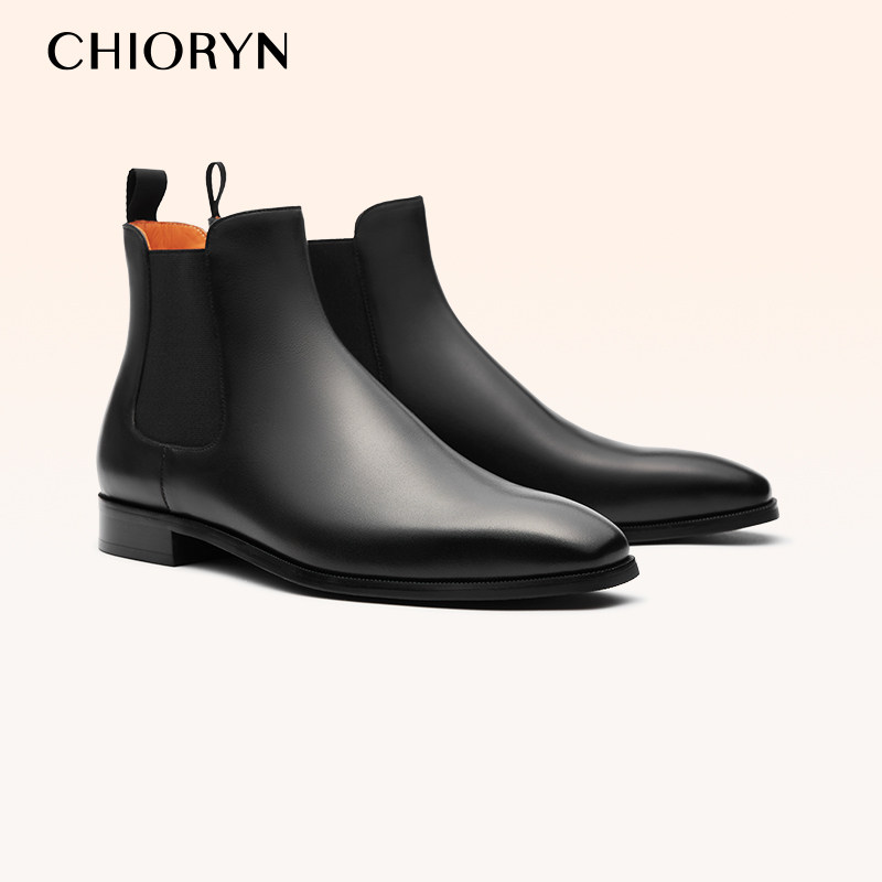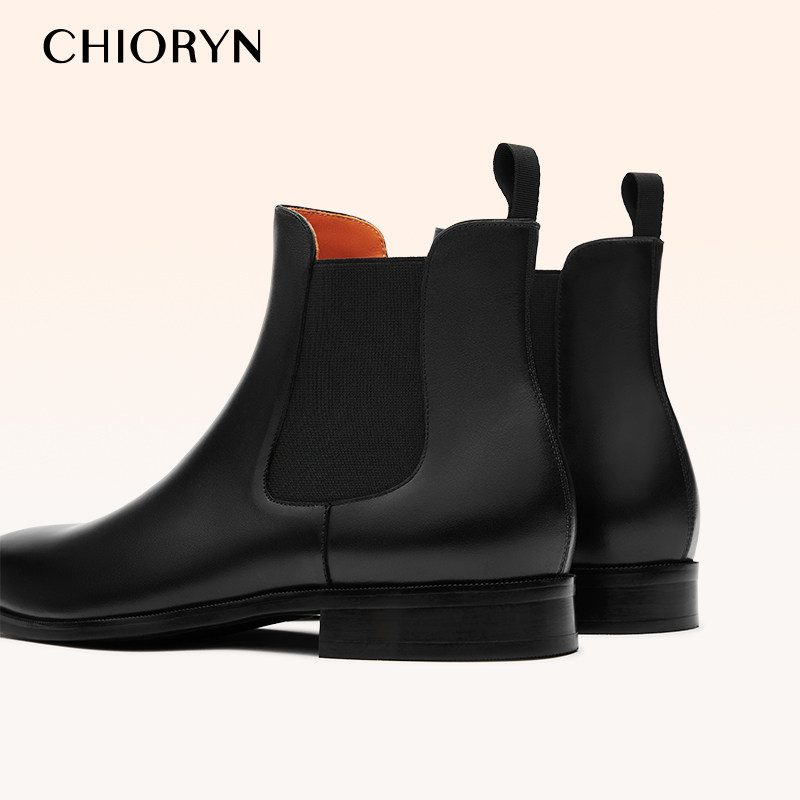 淘宝【王浩信同款】chioryn青润切尔西靴子男中帮方头真皮马丁靴皮鞋