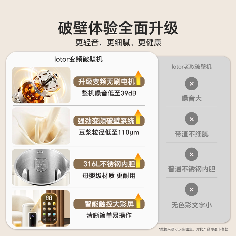 天猫lotor徕多破壁机变频轻音豆浆机家用全自动榨汁316不锈钢2026新款