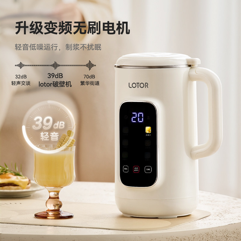 LOTOR徕多2026新款变频轻音破壁豆浆机,采用高品质316不锈钢精钢刀头与内胆,耐磨耐腐蚀,安全健康。搭载智能变频电机,动力强劲且运行平稳,有效降低噪音,实现轻音破壁,不打扰家人休息。支持全自动智能操控,一键完成豆浆、米糊、浓汤、果汁等多种料理,操作简单便捷。配备多重安全保护与智能预约功能,满足现代家庭多样化需求。机身设计简约时尚,易于清洗,是追求品质生活的理想厨房伴侣。LOTOR徕多以匠心工艺,为用户带来高效、静音、健康的破壁新体验。