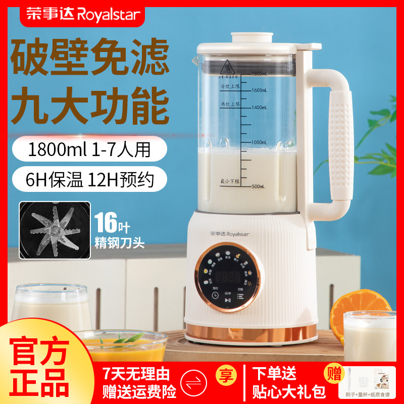 天猫荣事达破壁机家用全自动新款静轻音无渣免煮榨汁流食料理豆浆机