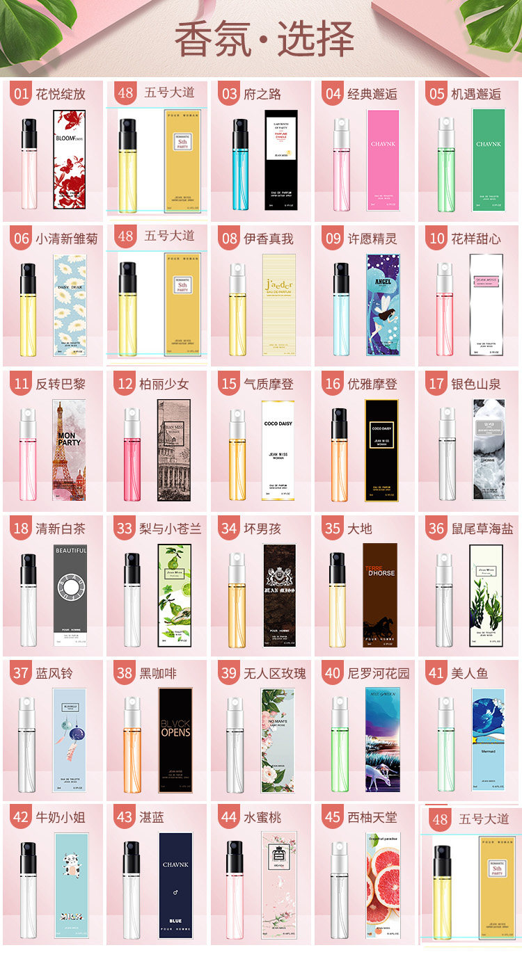 淘宝6支装女士男香水小样试用蓝色风铃许愿冥府牛奶小苍兰白茶清新淡