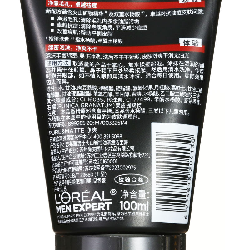 淘宝欧莱雅男士火山岩洁面膏深层清洁去黑头洗面奶控油祛痘淡化痘印