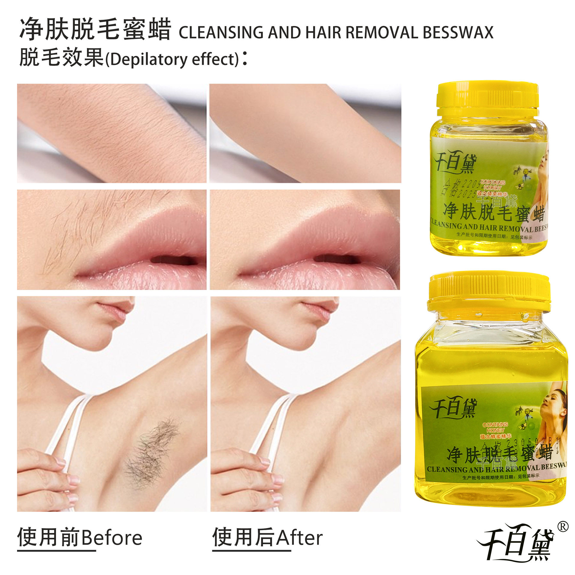 淘宝500g千百黛脱毛蜜蜡乳膏胡子蜡纸撕拉式男女士脱腋下腿部手毛全身