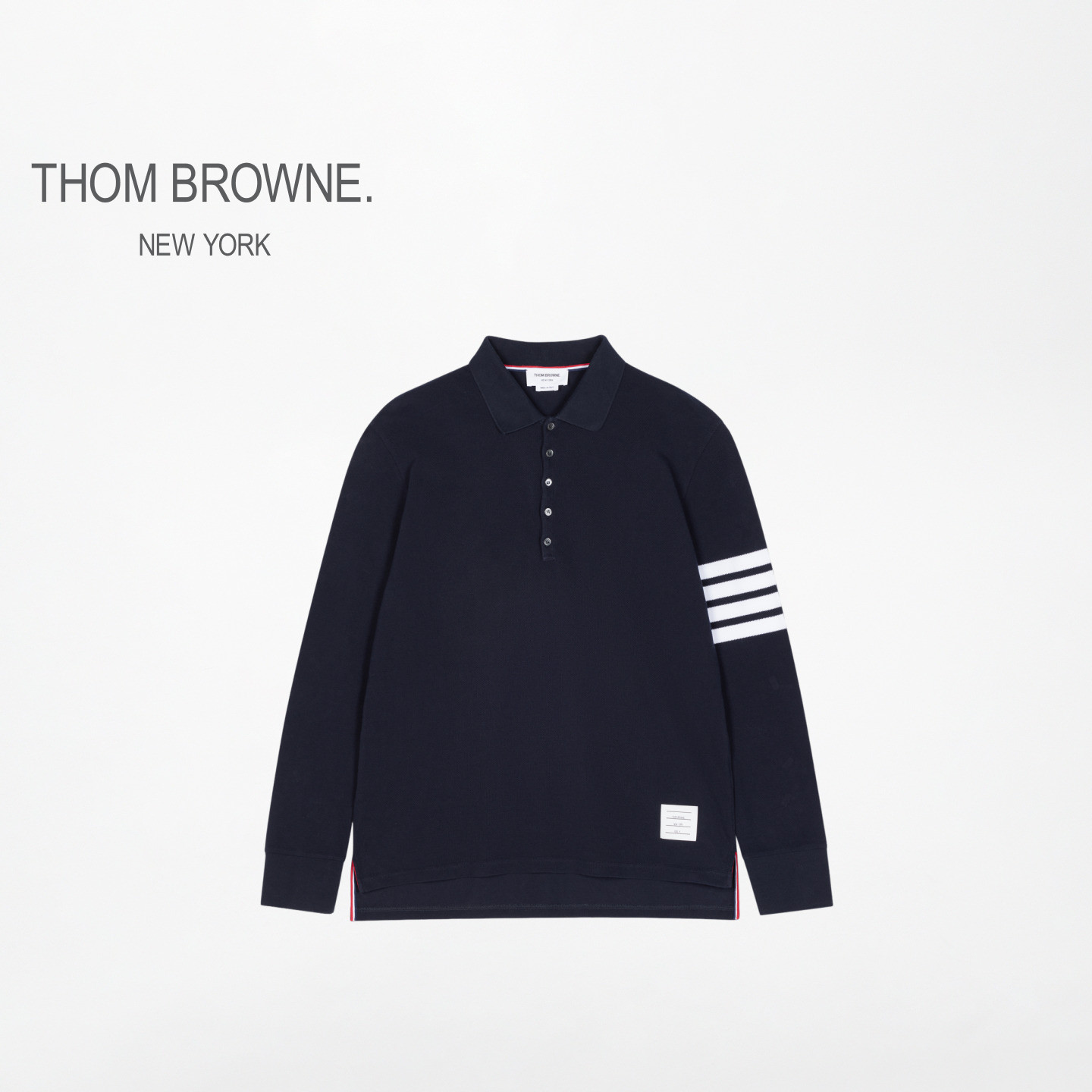 [3期免息]THOMBROWNE男女同款四条纹棉质长袖POLO衫,融合经典美式风格与现代剪裁,以高品质精梳棉打造,触感柔软、透气亲肤。标志性的四条纹袖口设计彰显品牌辨识度,简约中透出精致细节。合身版型兼顾舒适与型格,男女同款设计适合多种穿搭场景,轻松驾驭通勤、休闲或轻运动场合。领口与袖口加固处理,耐穿不易变形。现享3期免息分期,轻松入手轻奢质感,诠释低调优雅的时尚态度。无论是单穿还是叠搭,都能轻松提升整体造型质感,是衣橱中不可或缺的百搭单品。