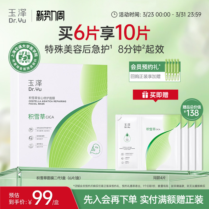 天猫玉泽积雪草冻干修护面膜敏感肌补水保湿修护屏障舒缓干燥泛红刺痛