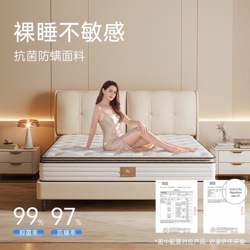 【政府补贴】Serta/舒达妙享乳胶床垫,采用高品质天然乳胶与独立袋装弹簧系统,软硬双面设计,满足不同睡眠偏好。一面适中偏硬,支撑脊椎自然曲线,适合仰睡或腰椎敏感人群;另一面柔软贴合,包裹感强,适合侧睡者。床垫透气防螨,有效分散体压,提升睡眠舒适度。作为政府补贴产品,享受专项消费优惠,性价比极高。适用于家庭主卧、客房等多种场景,是提升居家睡眠品质的理想选择。舒达品牌百年工艺保障,品质可靠,让您每晚安享深度好眠,健康生活从一张好床垫开始。