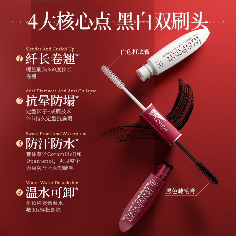 天猫欧莱雅睫毛膏防水纤长卷翘不晕染持久加长双头浓密官方正品旗舰店