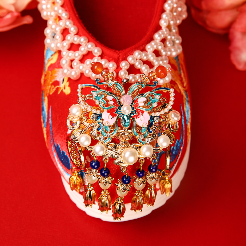 商品介绍:这款加绒保暖的原创秀禾鞋,是七月荷品牌精心打造的婚鞋。它采用高质量的材质,经过精细的绣花工艺,展现出独特的魅力。这款鞋子的设计灵感源于天长地久的爱情理念,寓意着新人之间的爱情永恒不变。鞋面绣有精美的花朵和图案,不仅时尚美观,还具有保暖效果。无论是婚礼现场还是出门旅行,这款婚鞋都是新娘不可或缺的选择。现货充足,品质保证,为您的大日子增添无限光彩。