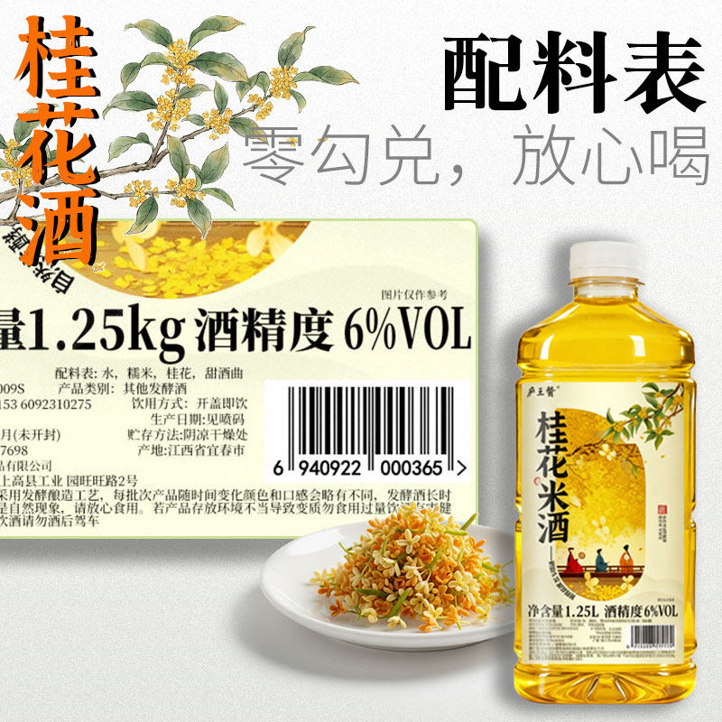 天猫正宗桂花酒金桂糯米发酵低度晚安微醺小甜酒米酒原浆醪糟农家果酒