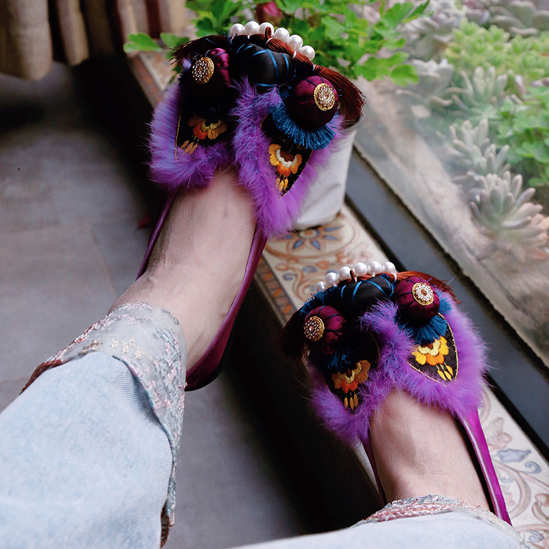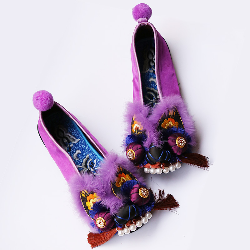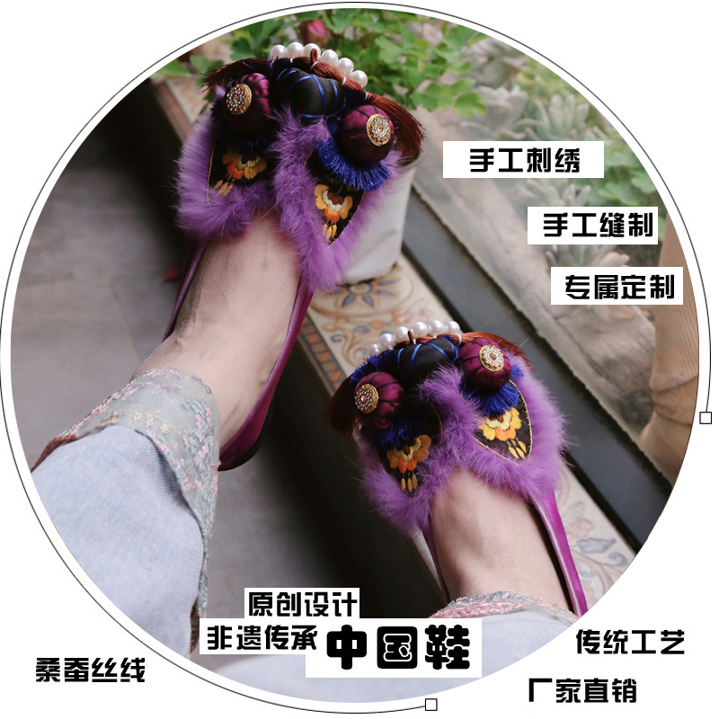 2022走绣坊新款直销非遗原创复古尖头民族风国潮纯手工绣花鞋缎面