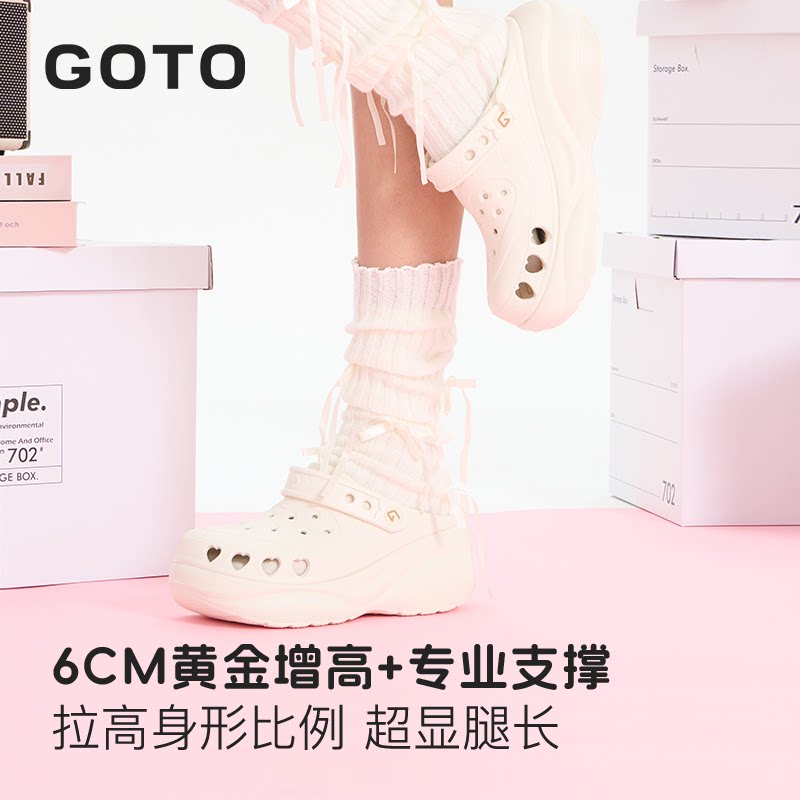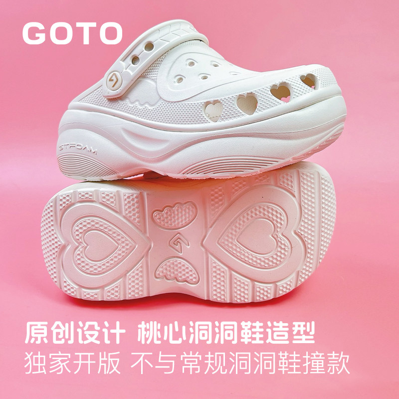 天猫GOTO桃心洞洞鞋女款明星同款厚底增高凉鞋新款防滑沙滩鞋子拖鞋