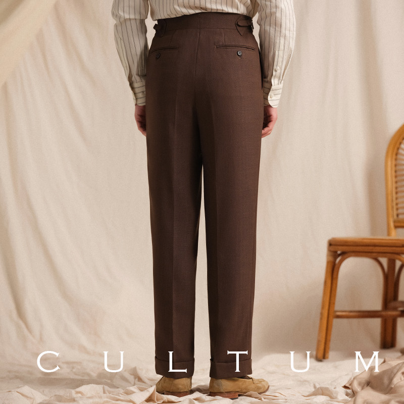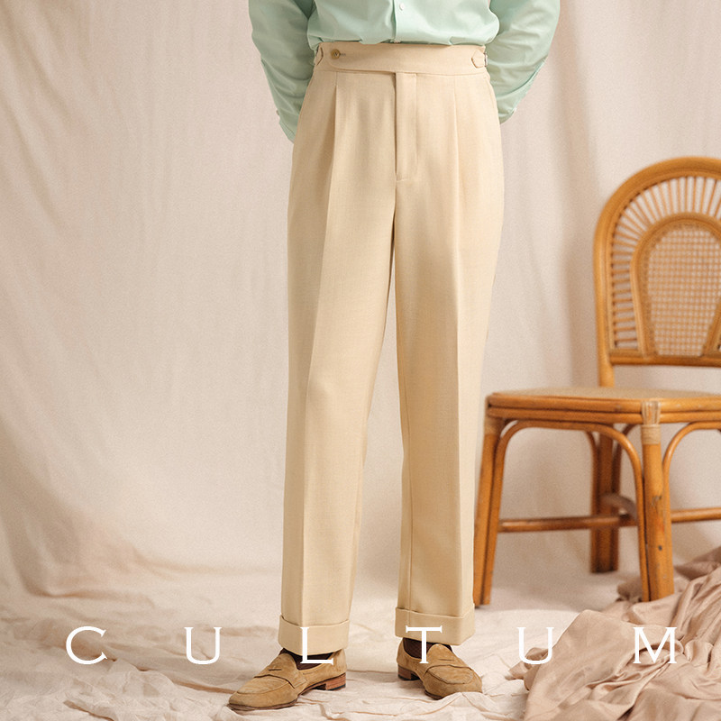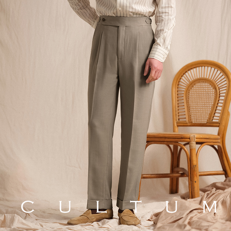 淘宝【麻丝人字纹】CULTUM意式那不勒斯单褶免烫西裤男高级感西装裤子