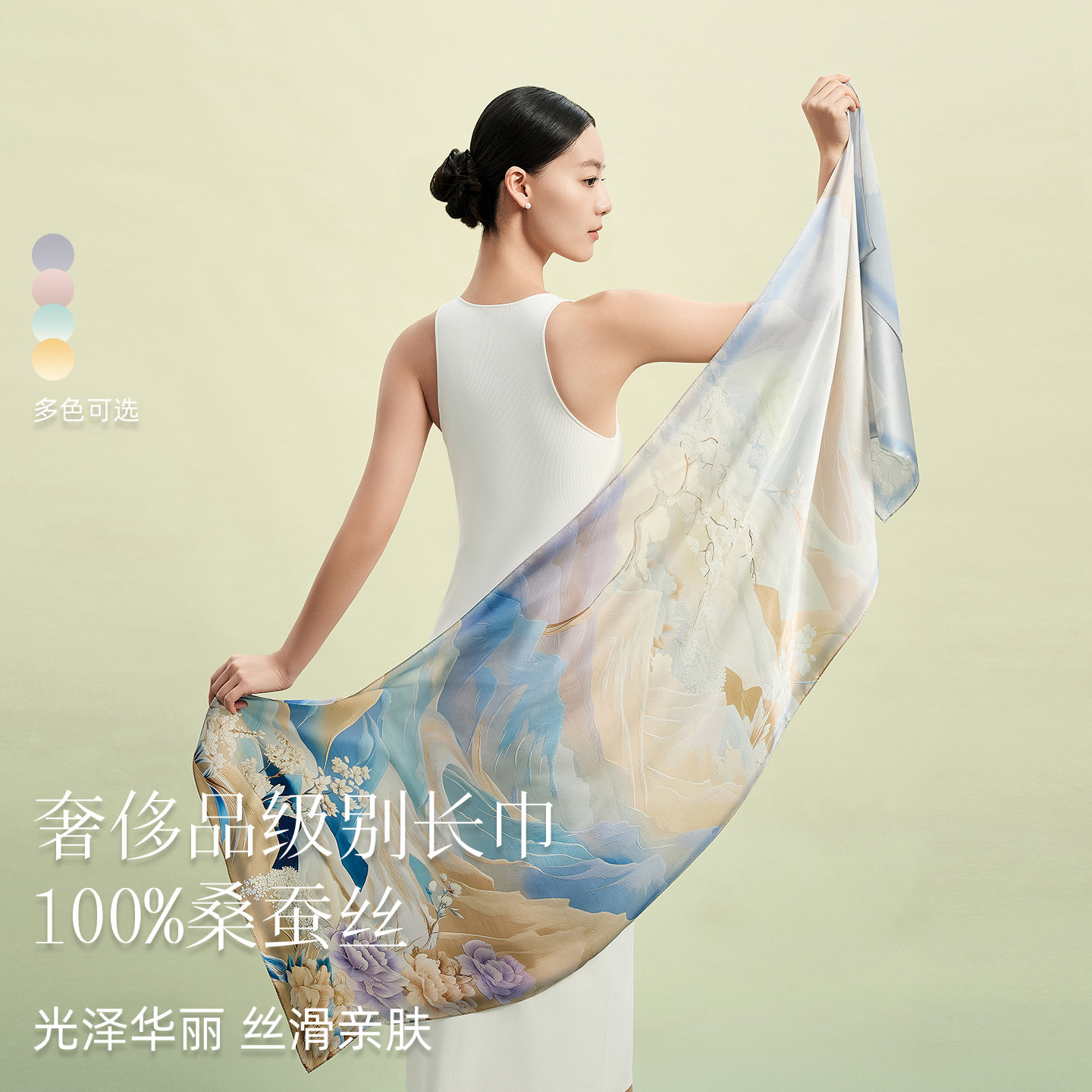 天上海故事2026新款真丝印花大方巾披肩女丝巾妈妈款丝绸礼物送长辈