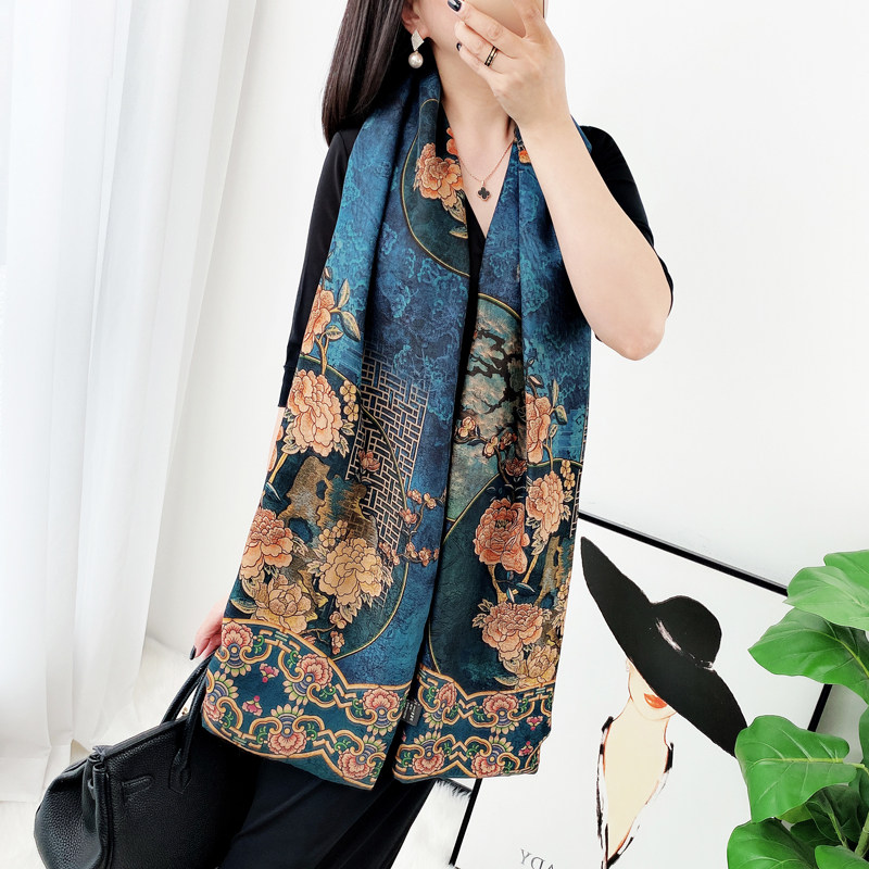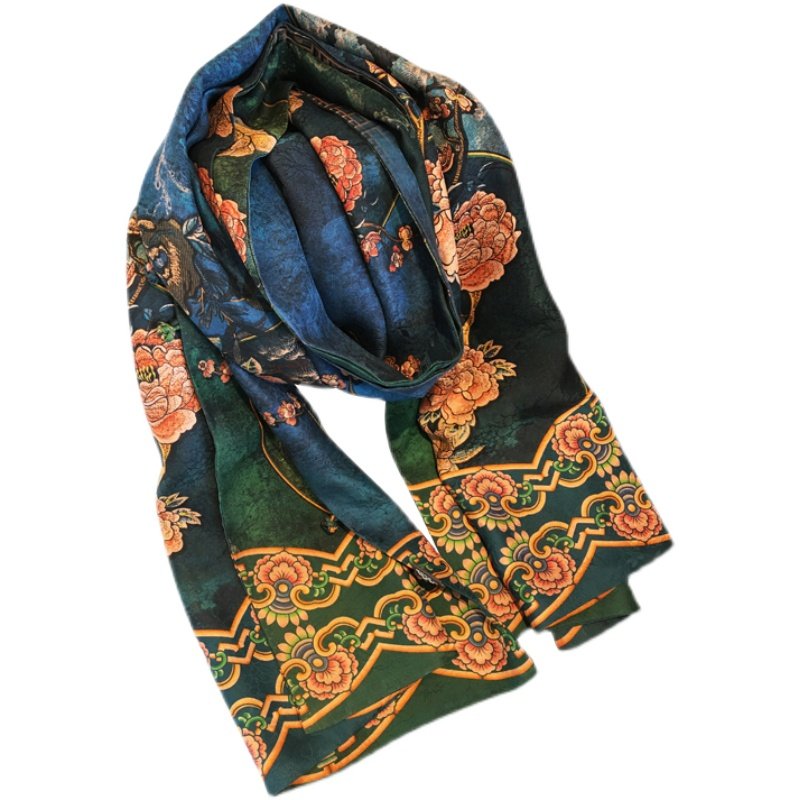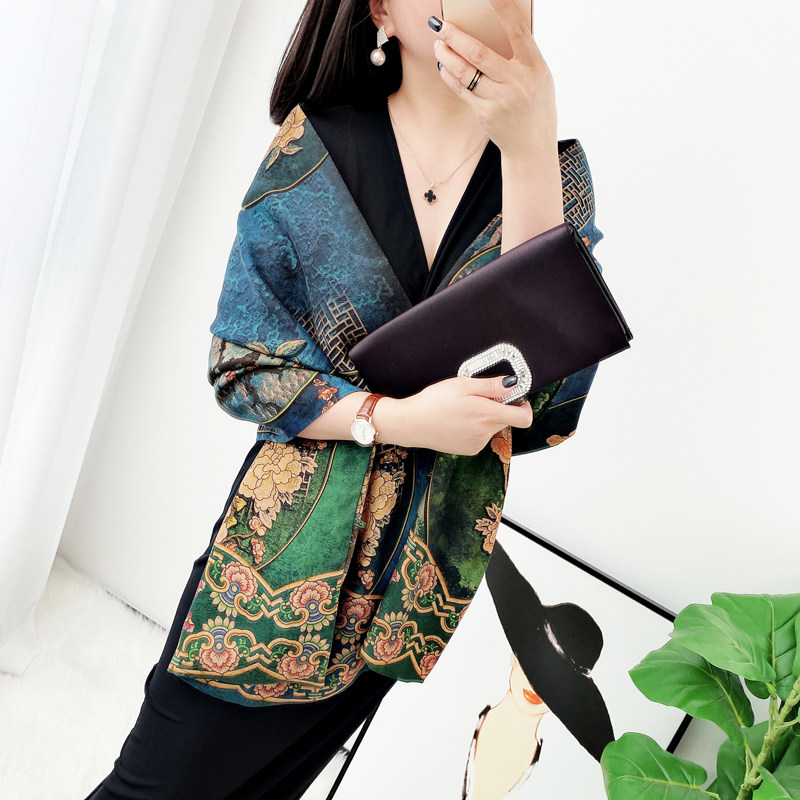 淘【千里江山图】双面双色香云纱大方巾优雅中国风高档送礼丝巾围巾