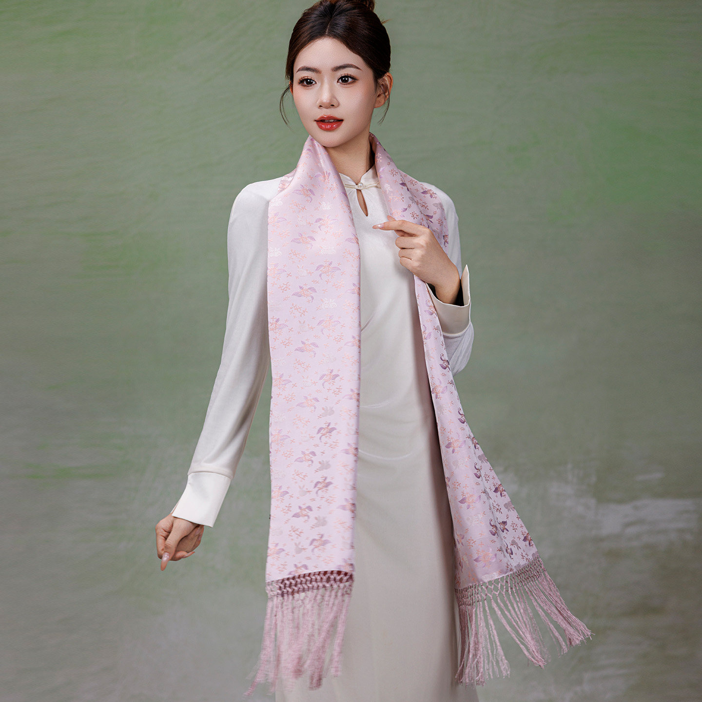 天万事利真丝桑蚕丝十二花神长巾珍珠丝巾扣礼盒送礼礼物—花样年华