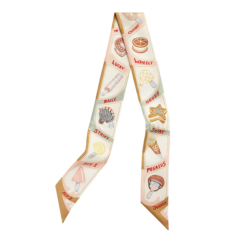 淘宝新款趣味冰淇淋小丝巾18姆米真丝束发带桑蚕丝包包手柄绑包丝巾