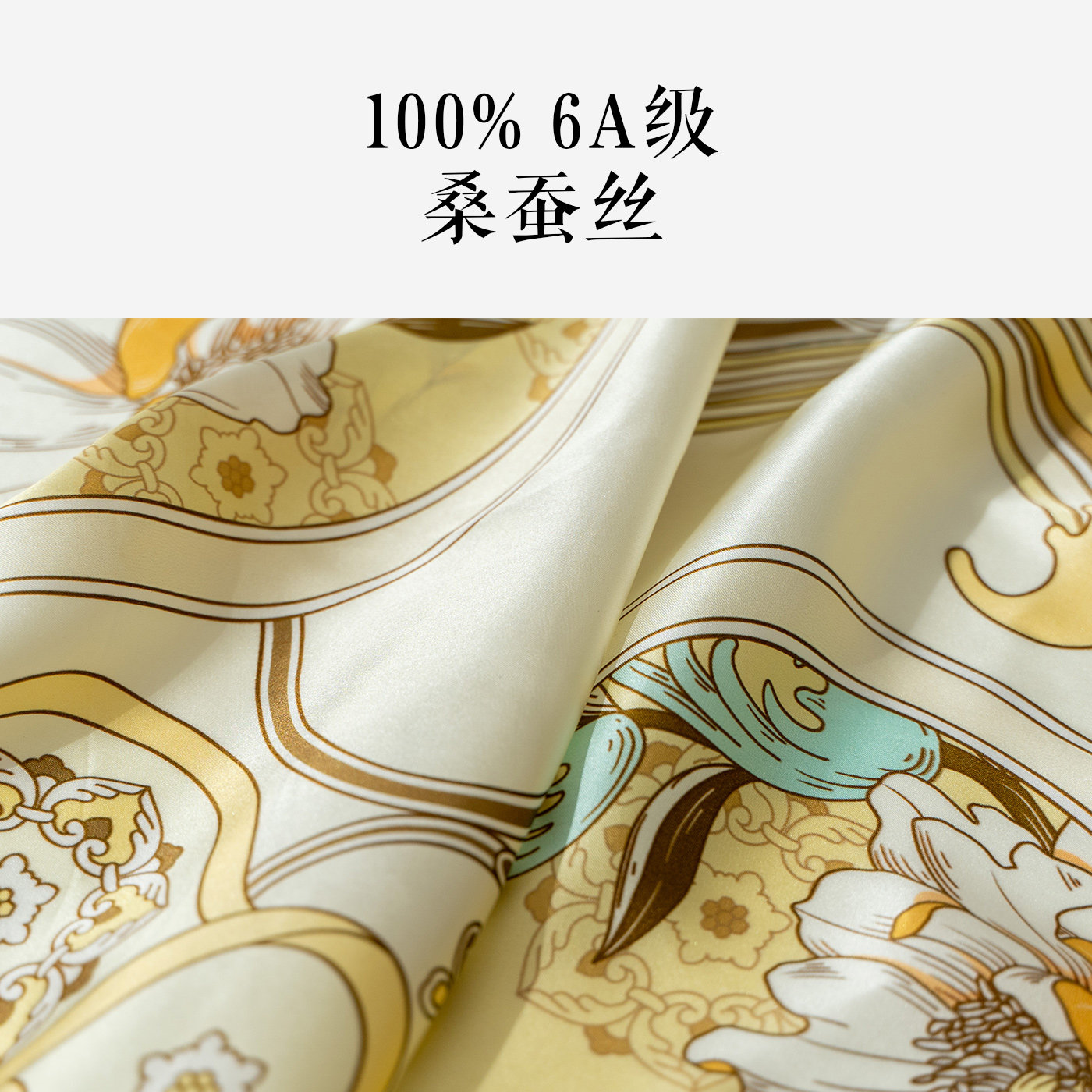 天【凤凰之家】万事利100%桑蚕丝高端丝巾中方巾含玻尿酸 宁寿闲趣