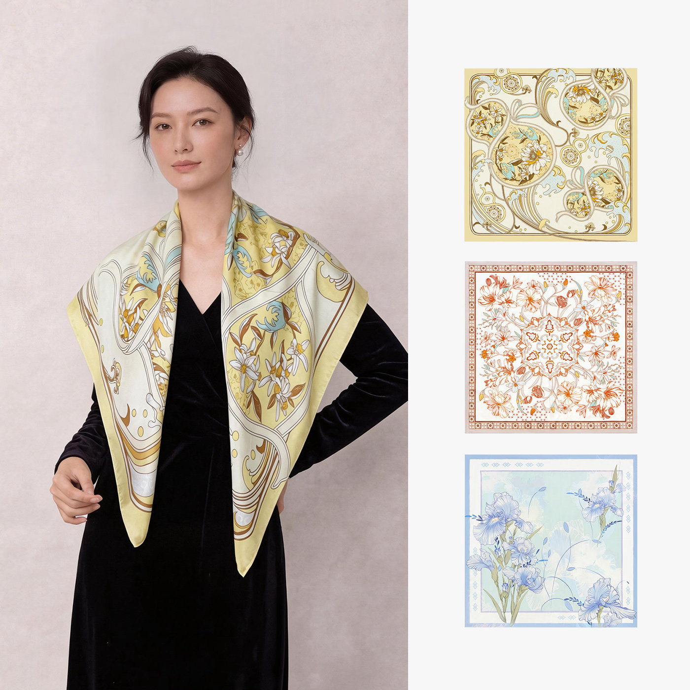 绣娘丝绸真丝丝巾100%桑蚕丝方巾披肩女外搭双面印花高级生日礼物
