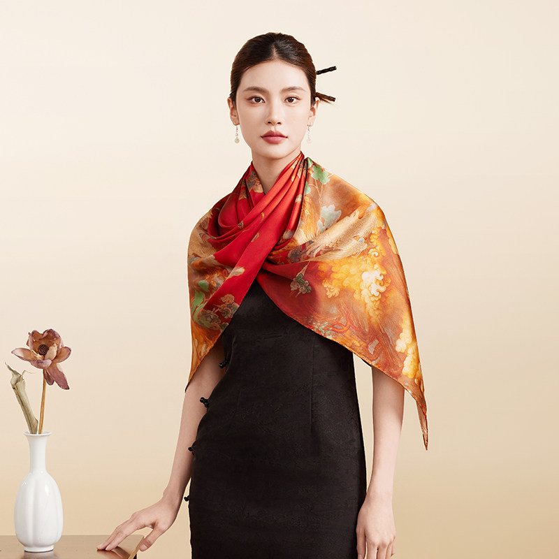 绣娘丝绸真丝丝巾100%桑蚕丝方巾披肩女外搭双面印花高级生日礼物