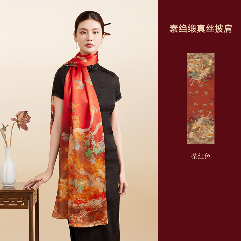 真丝丝巾女妈妈旗袍大披肩外搭高端盘扣披风斗篷杭州丝绸苏州礼盒