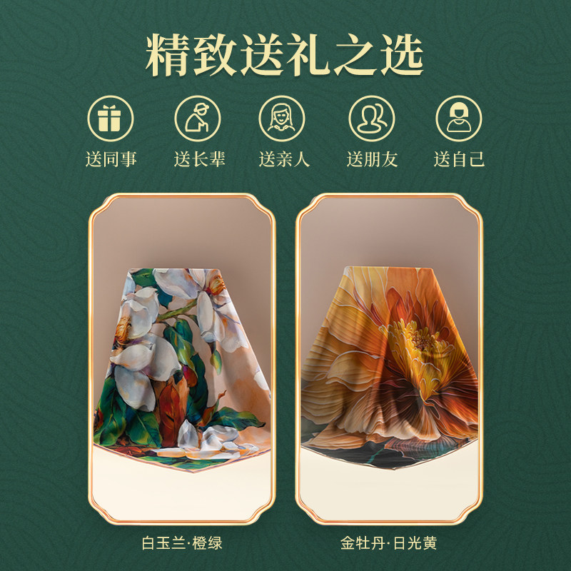 绣娘丝绸真丝丝巾100%桑蚕丝方巾披肩女外搭双面印花高级生日礼物