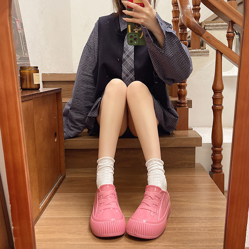厚底女雨鞋低帮防滑防水工作胶鞋纯色浅口时尚百搭成人内增高水鞋