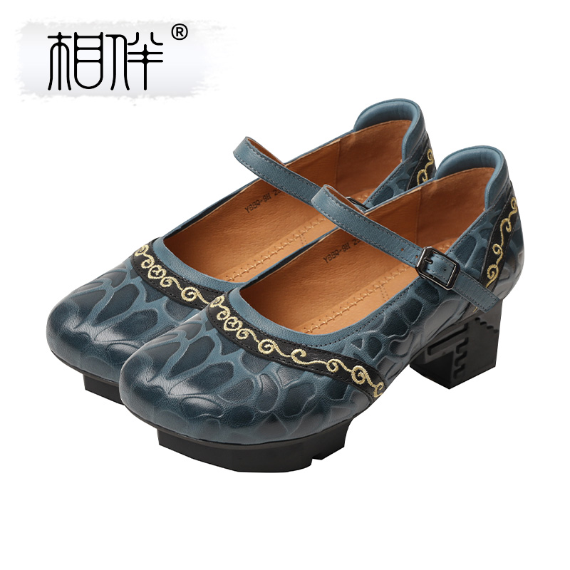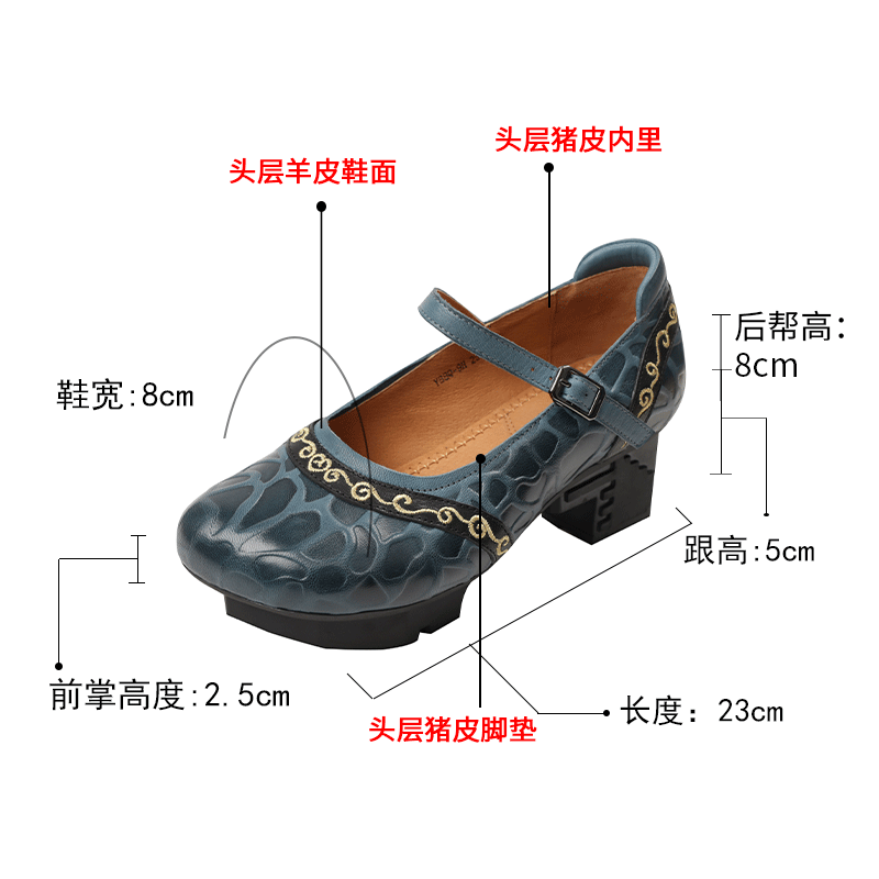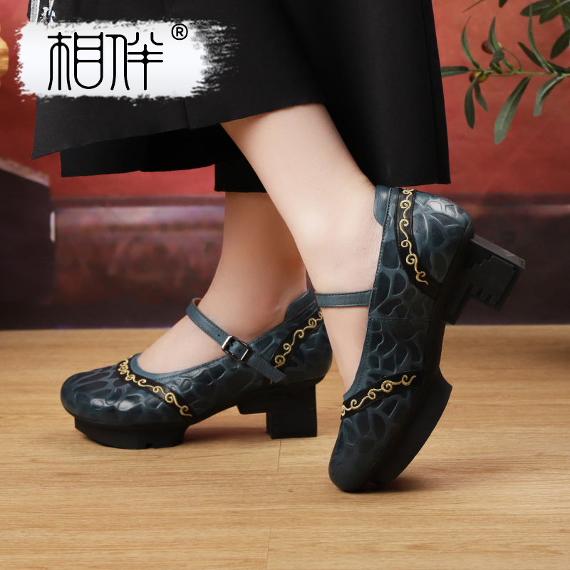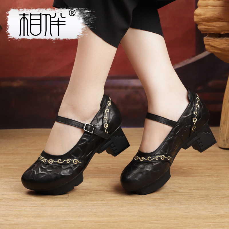 天猫相伴羊皮真皮旗袍皮鞋女2025早秋新款民族风原创绣花单鞋中式女鞋