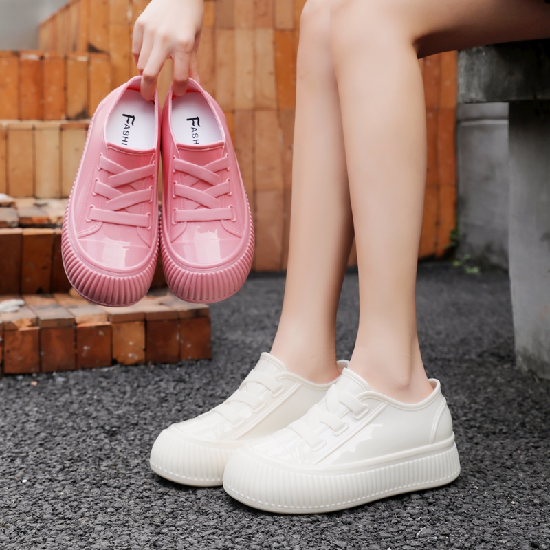 淘雨鞋女士成人时尚款低帮防滑厚底内增高水鞋学生胶鞋防水加绒雨靴