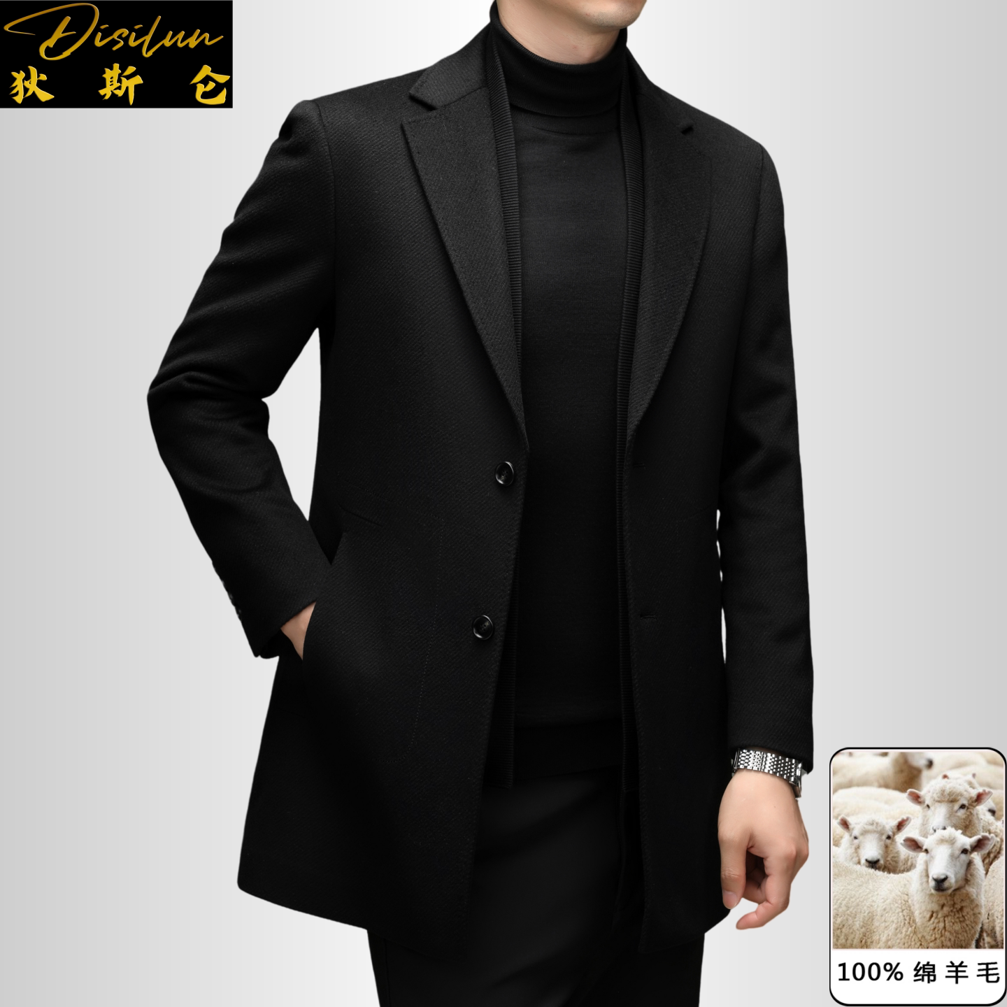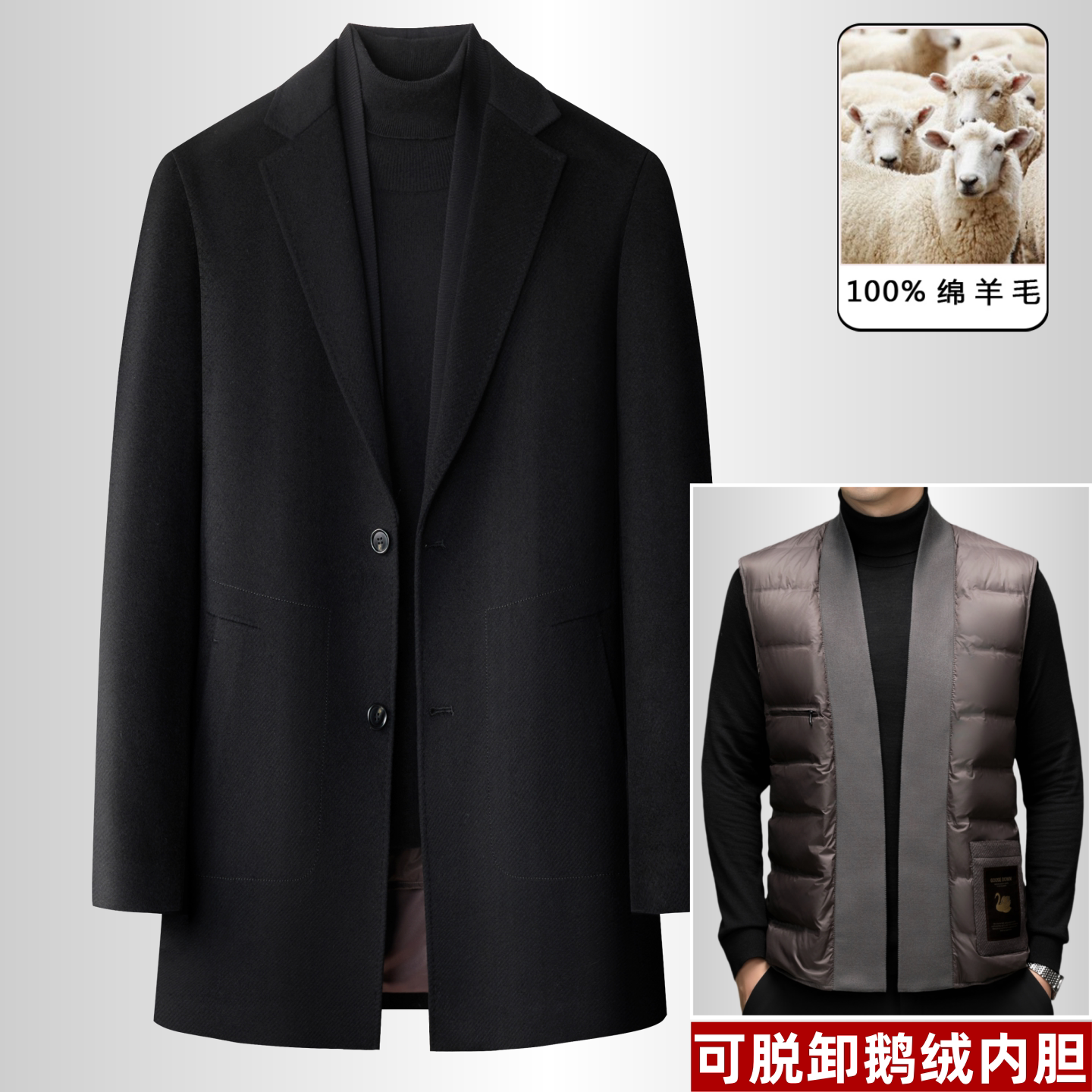 淘宝狄斯仑中长款羊绒大衣男士秋冬季高端中年商务可脱卸鹅绒内胆外套
