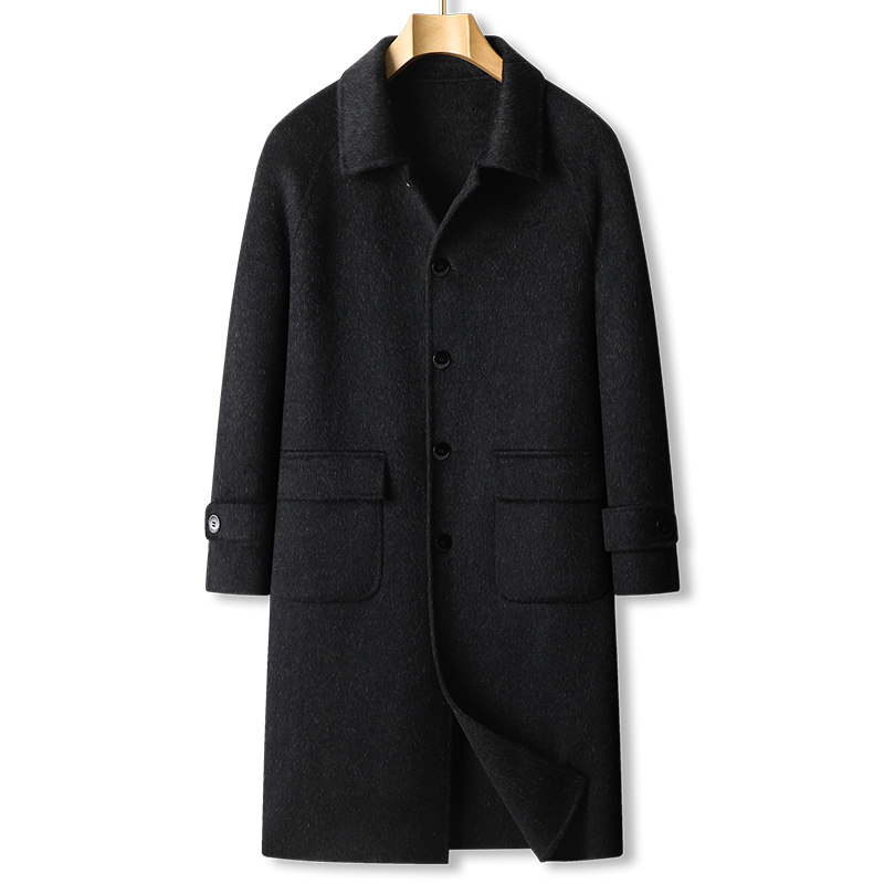 海上公路单扣立领羊毛大衣男士秋冬季气质高级感长毛双面呢外套
