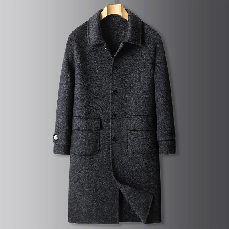 新款秋冬季毛呢大衣男士纯羊毛西装领双面呢时尚休闲无羊绒外套潮