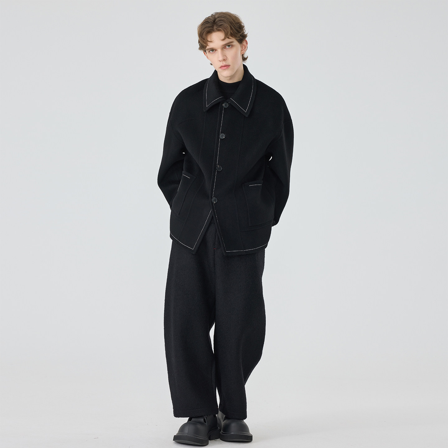新款秋冬季毛呢大衣男士纯羊毛西装领双面呢时尚休闲无羊绒外套潮