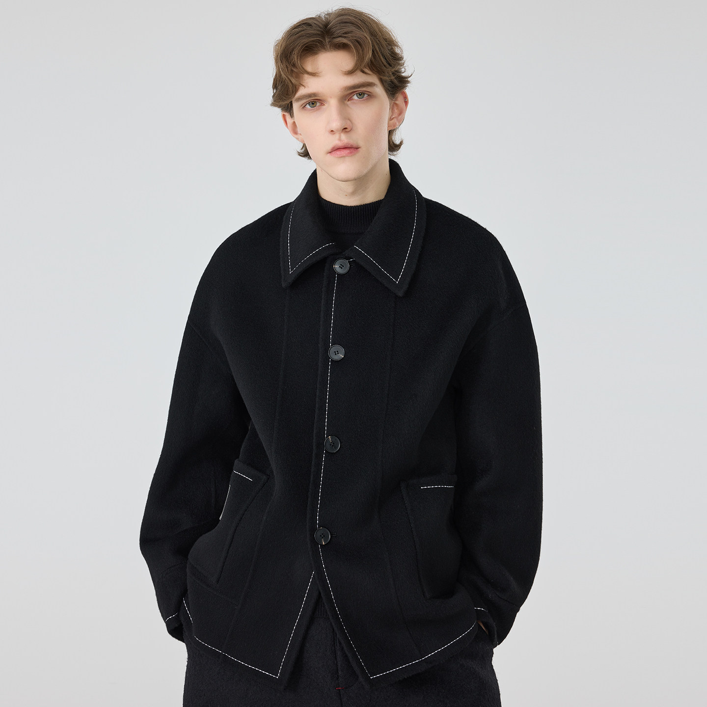 GORNIA/格罗尼雅男士进口高级面料春明线绵羊毛大衣宽松通勤外套