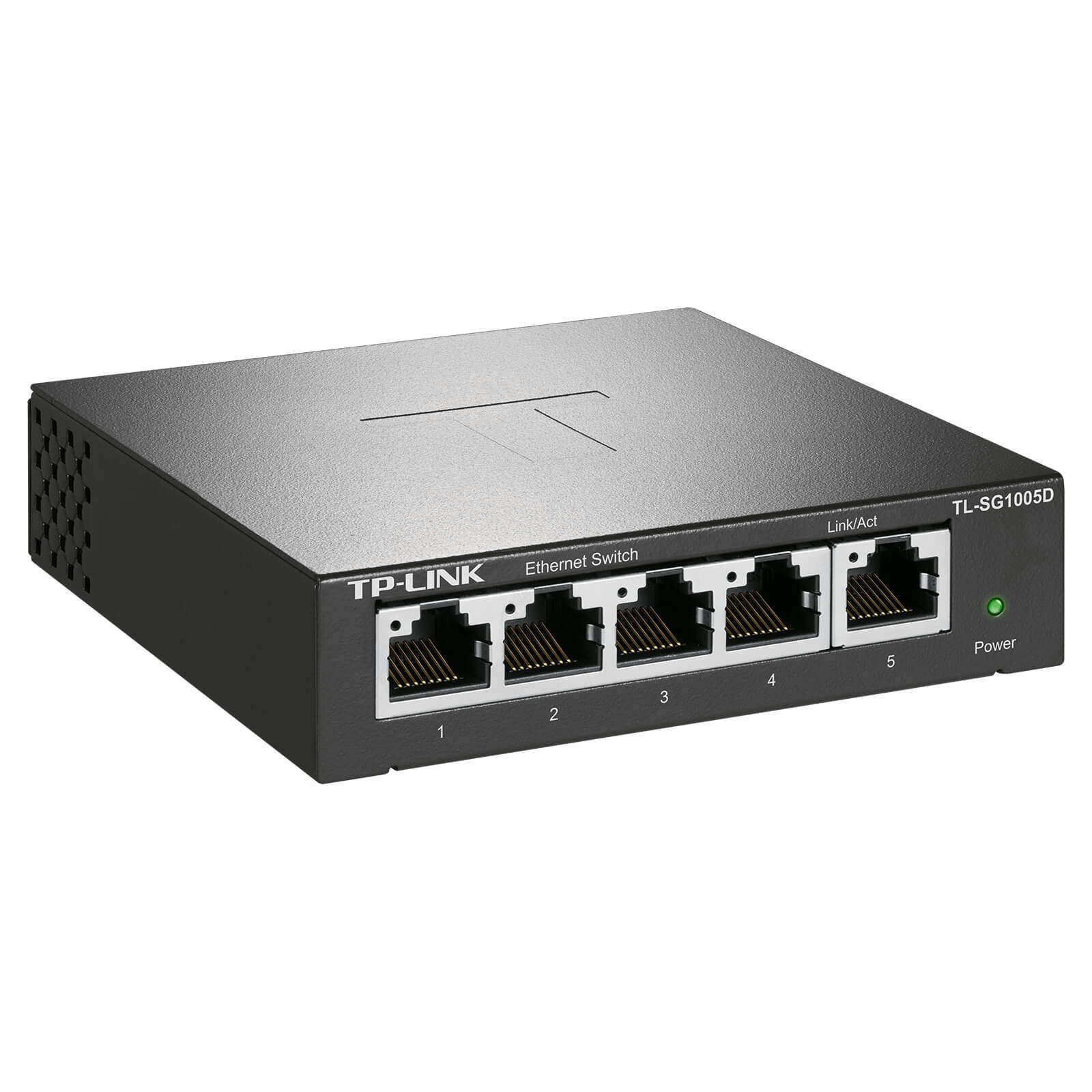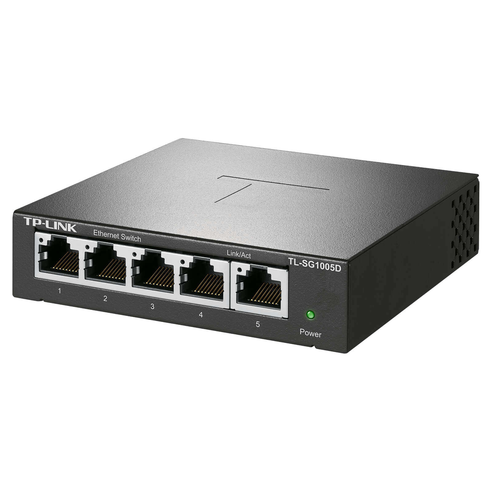 TP-LINK TL-SG1005D是一款全千兆5口非网管型网络交换机,采用坚固钢壳设计,具备良好的散热性与耐用性。它提供5个10/100/1000Mbps自适应以太网端口,支持即插即用,无需复杂配置,轻松扩展家庭或小型办公网络。设备支持1进4出模式,可将单一网线接口扩展为多个千兆网口,实现多设备高速互联,满足高清影音、在线游戏和大文件传输等高带宽需求。内置自动MDI/MDIX功能,支持任意端口连接,兼容各类网线。低功耗设计,节能环保,是提升网络性能与连接便利性的理想选择。