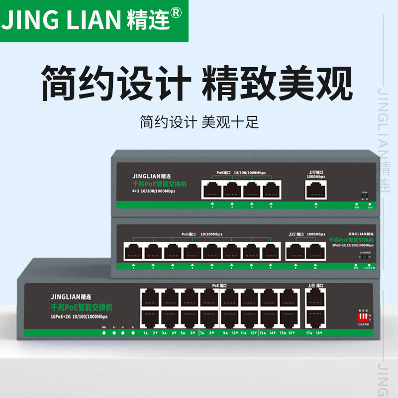 精连POE网络光交换机是一款专为安防监控、无线AP覆盖等场景设计的高性能网络设备,支持千兆/百兆自适应传输,提供4口、8口、9口、16口及24口多种规格,满足不同规模组网需求。设备内置高品质电源供电模块,支持IEEE 802.3af/at标准POE供电,可直接为摄像头、AP等设备供电,简化布线,提升部署效率。支持级联扩展与机架式安装,结构紧凑,散热优良,适用于机房、楼宇、园区等环境。具备稳定可靠的性能、低功耗设计以及强大的抗干扰能力,确保视频数据流畅传输,是构建高效、安全监控网络的核心选择。