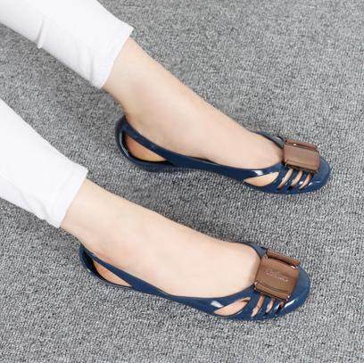 淘内增高果冻雨鞋新款软底鱼嘴平底休闲胶鞋防水蝴蝶结防滑沙滩凉鞋