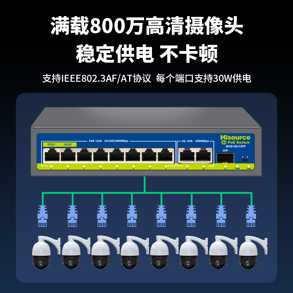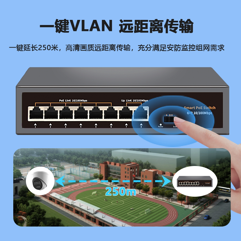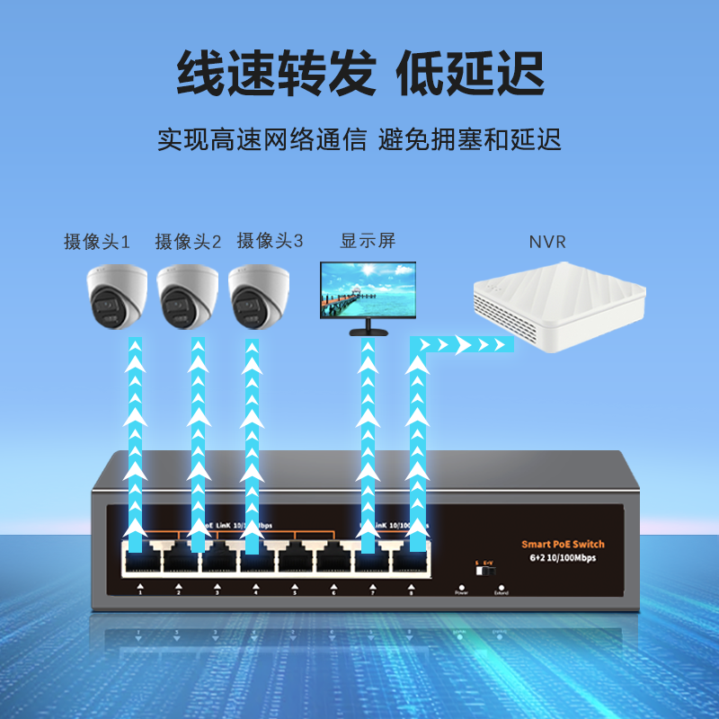 众通源POE交换机是专为安防监控设计的网络供电设备,支持4/6/8/9/16/24/48口多种规格,兼容百兆与千兆传输,提供48V国标POE供电,可为海康、大华等主流品牌摄像头及无线AP稳定供电与数据传输。设备内置防雷保护模块,有效抵御浪涌冲击,保障户外复杂环境稳定运行。支持光纤接入与网线中继功能,扩展传输距离,提升网络覆盖能力。具备即插即用与网管型两种模式,满足不同场景需求,广泛应用于小区、园区、交通、校园等监控系统,实现高效、安全、可靠的智能组网。