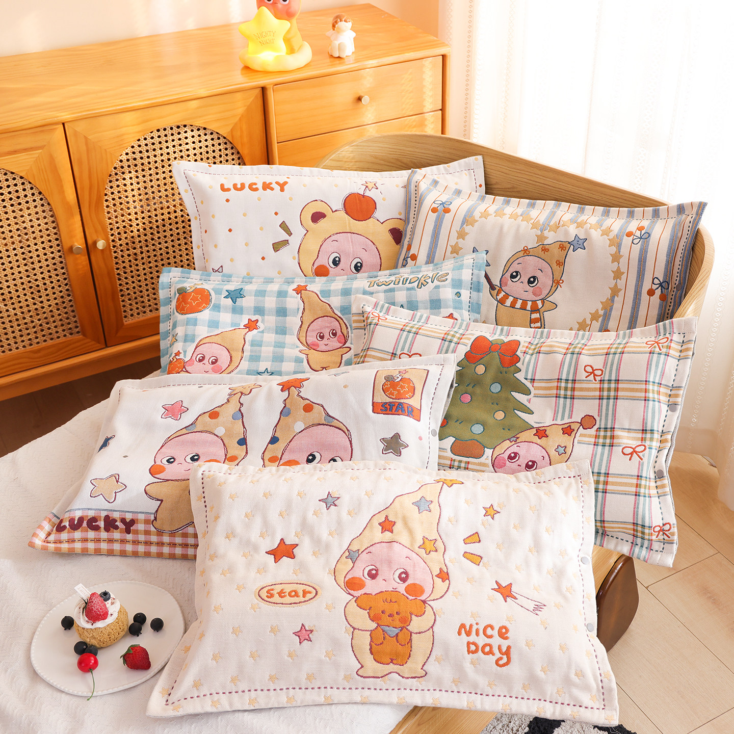 淘宝A类按扣式纯棉纱布儿童枕套卡通全棉宝宝枕头套幼儿园枕芯内胆套