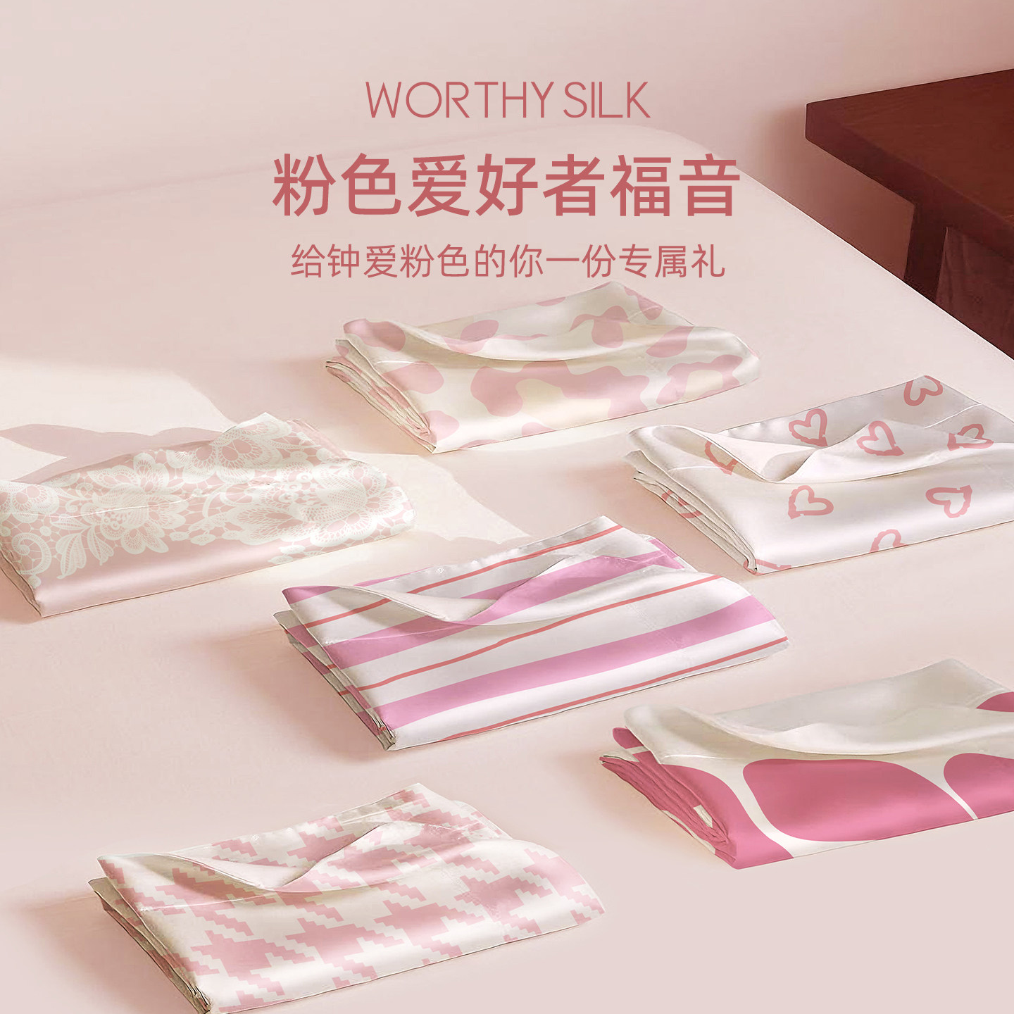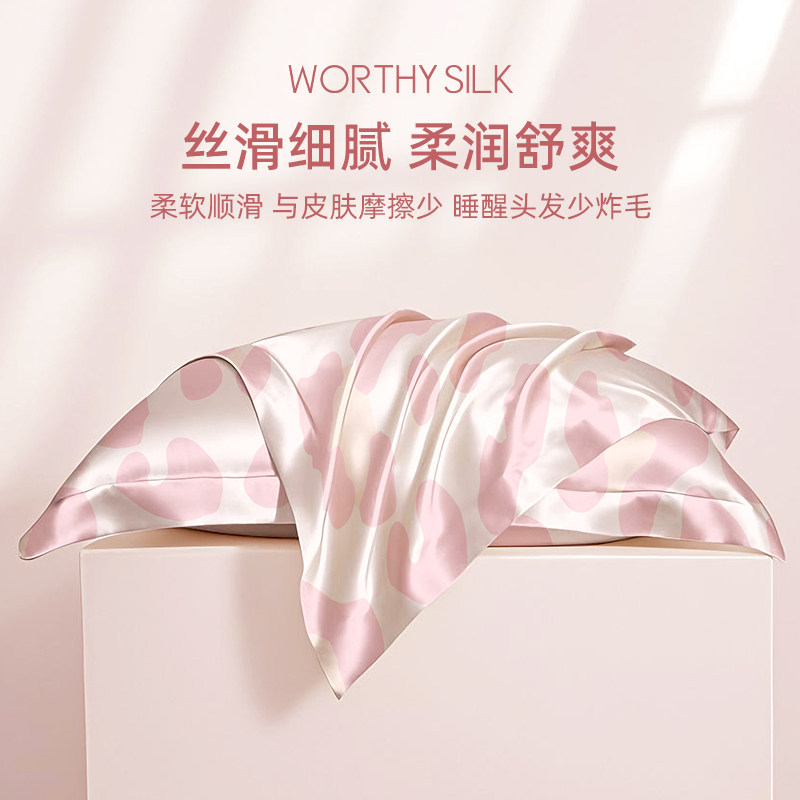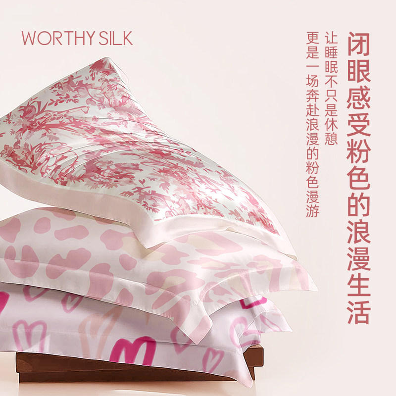 天猫WORTHYSILK 粉色少女ins风单面桑蚕丝枕套进口莱赛尔礼盒装枕头套