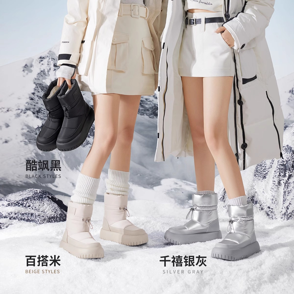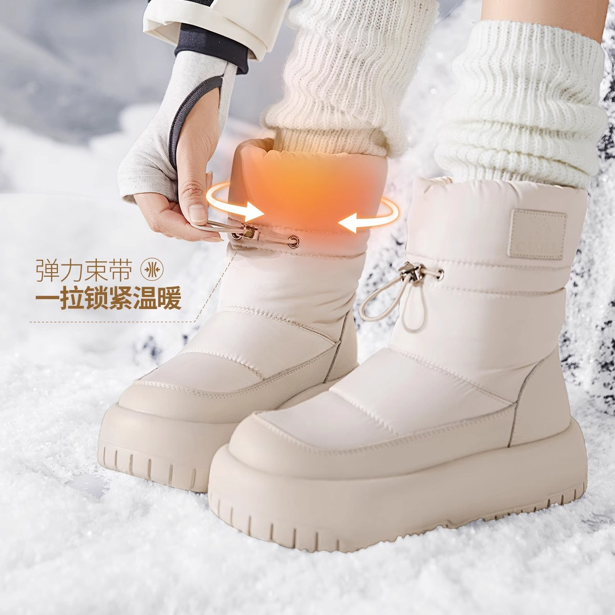 天猫骆驼雪地靴防水防滑女鞋2025冬季新款加绒厚底靴子加厚保暖棉鞋女