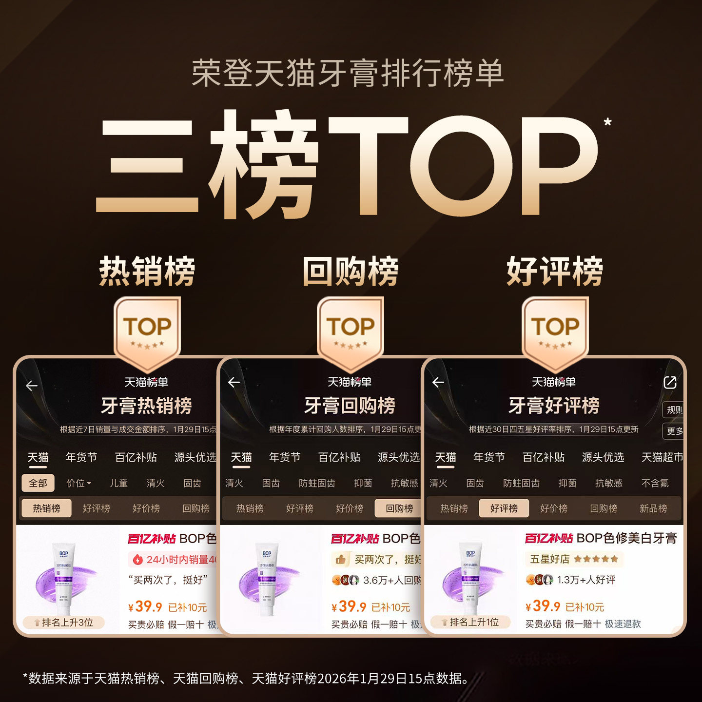 天猫BOP色修美白牙膏含氟抗菌肽亮白牙齿去黄去渍清新口气正品成人