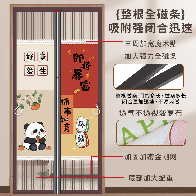 2025年新款防蚊门帘全磁条强力夏季纱窗魔术贴家用金刚网纱门纱帘