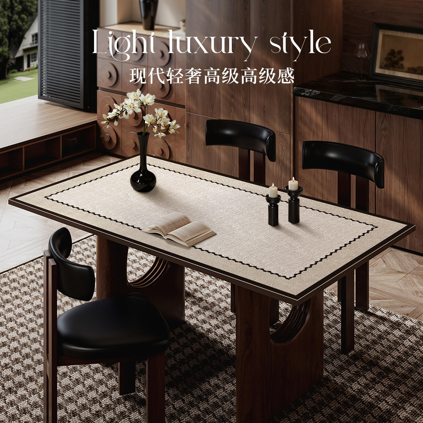 这款法式轻奢复古高级感餐桌垫,融合优雅复古美学与现代实用功能,专为提升居家氛围感而设计。采用高品质防水防油面料,有效抵御日常泼溅,耐高温材质防烫耐用,保护桌面免受损伤。免洗易打理,轻轻一擦即净,轻松应对各种用餐场景。细腻纹理与复古色调相映成趣,无论是餐桌、茶几还是边几,都能瞬间提升空间格调。精致包边工艺彰显品质细节,适配多种家居风格,让每一次用餐都充满仪式感。既是实用保护垫,也是提升生活美学的点睛之笔,为现代家庭带来兼具美感与便捷的轻奢体验。