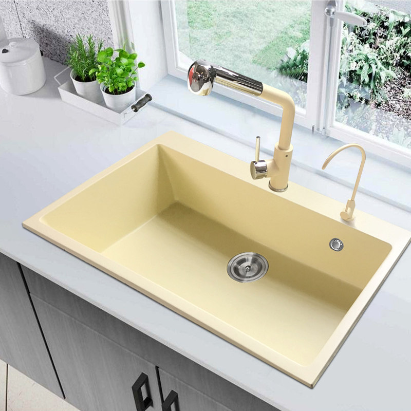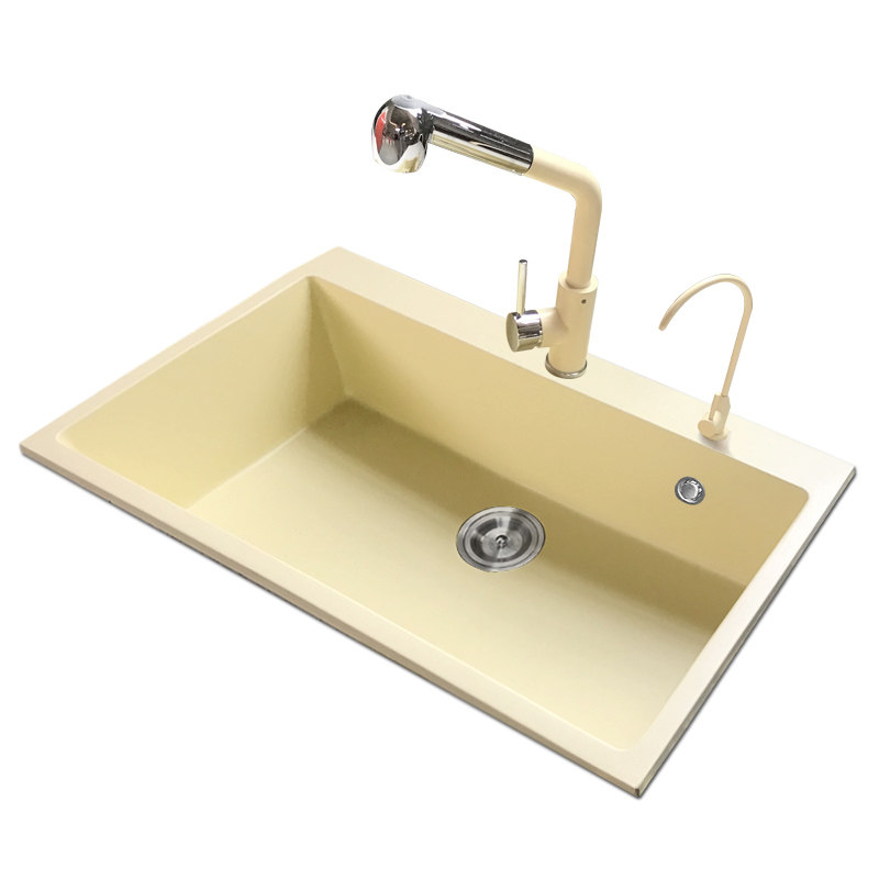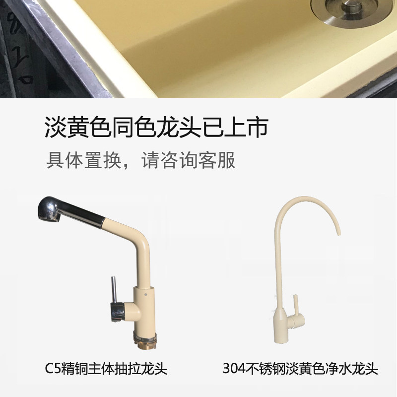 天猫百恩居奶黄色石英石大单槽厨房彩色洗菜盆水池定制花岗岩水槽台下
