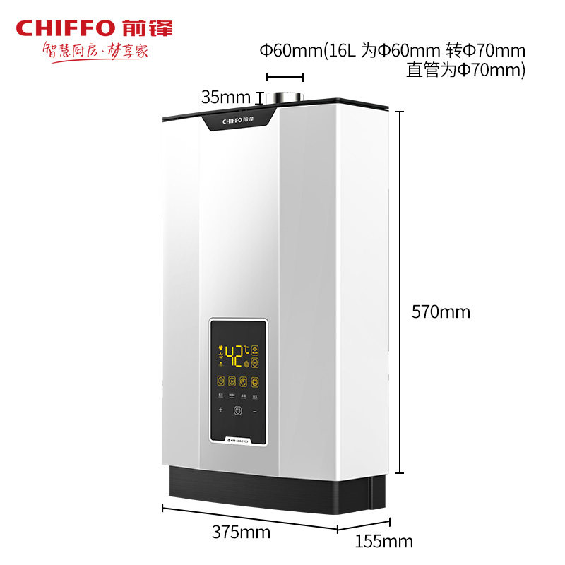 前锋燃气热水器智能双增压FD760,搭载16L大容量设计,满足多口之家全天候热水需求。创新智能双增压技术,有效提升水压与燃气供给,实现快速热水输出,告别等待。零冷水功能结合四重巡航模式(定时、点动、全天、AI智能),精准预热水管,即开即热,节能高效。支持WIFI远程控制,通过手机APP随时随地调节水温、查看运行状态,便捷智能。内置多重安全防护系统,包括防冻、防干烧、防超压等,使用更安心。外观简约时尚,适配多种家居风格。FD760以科技赋能舒适沐浴体验,是现代家庭智慧热水生活的优选之作。
