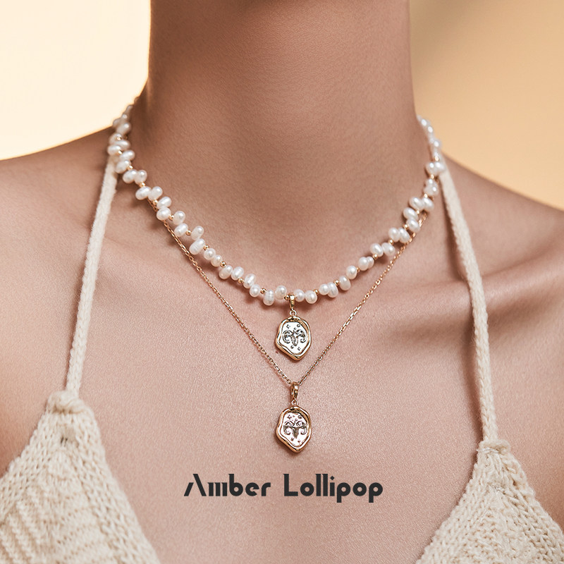天猫王玉雯同款AmberLollipop珍珠项链女星座吊坠小众锁骨链轻奢配饰
